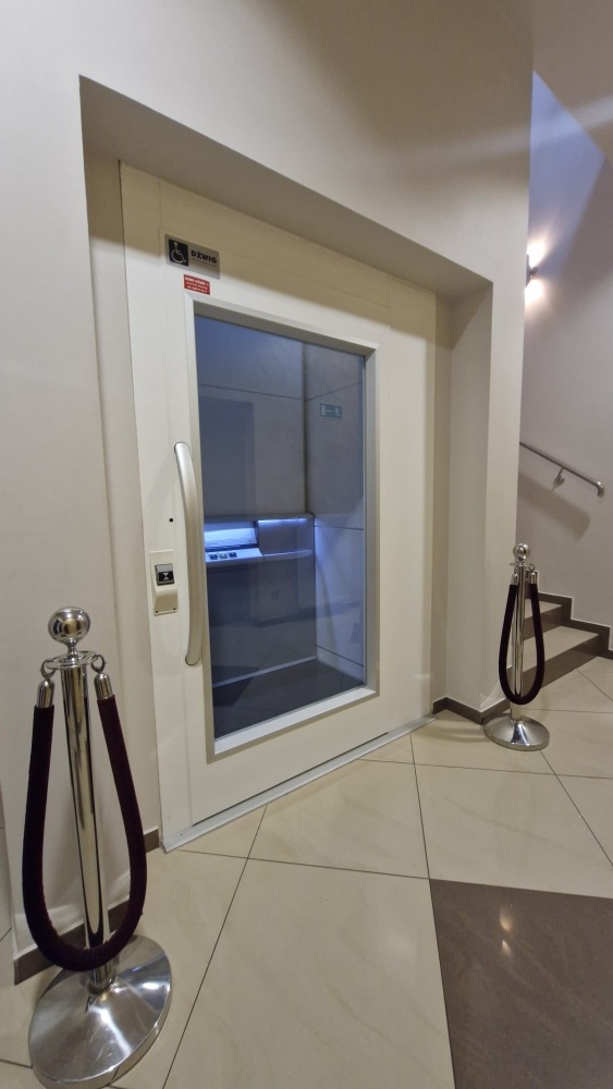 Udogodnienia: klimatyzacja, monitoring, podnośnik dla osób niepełnosprawnych
