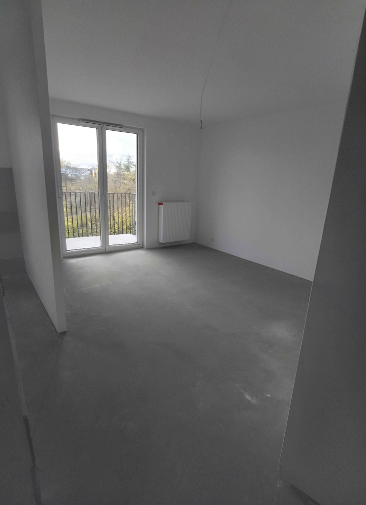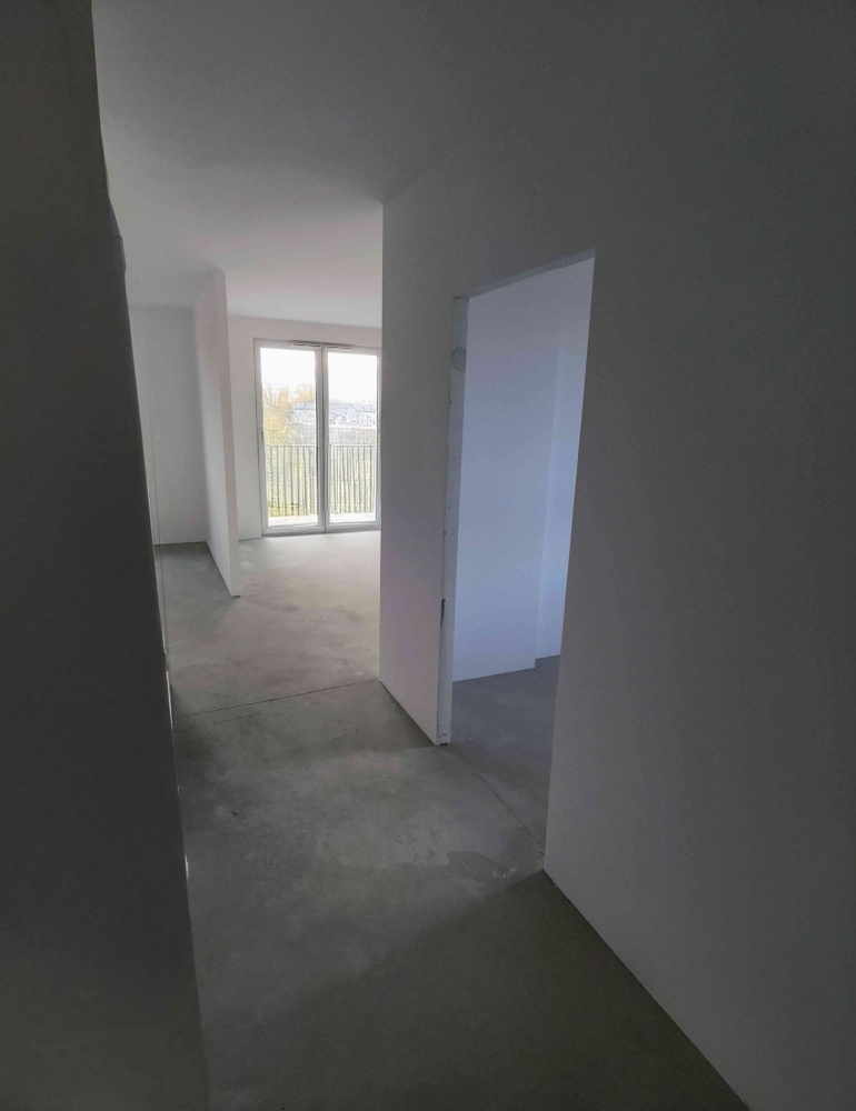 Mieszkanie słoneczne, narożne ze stronami świata południe (salon, kuchnia, korytarz)-zachód(sypialnia), 3 ostatnie piętro. Ściany oraz sufity wykończone w gładziach gipsowych oraz pomalowane w kolorze białym.