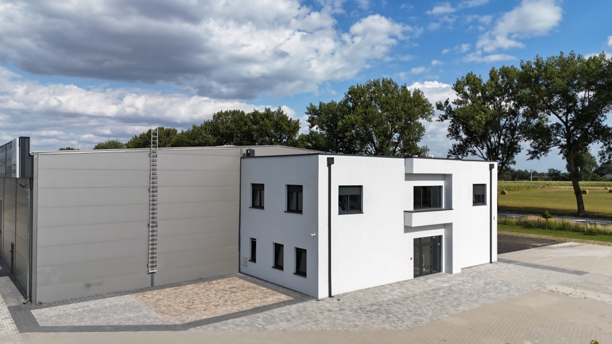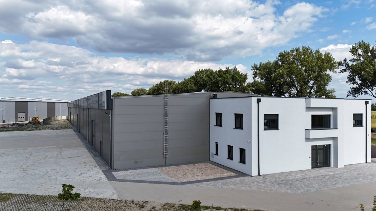Inwestycja zlokalizowana jest w Pobiedziskach przy ulicy Partnerskiej, na działce nr 112/14 na terenie przeznaczonym w Planie Miejscowym pod aktywizację gospodarcza. Przedmiotowa działka ma powierzchnię 40,434 m2. Zaprojektowany obiekt w zasadniczej części mieszczącej biura oraz części socjalnej jest dwukondygnacyjny, natomiast przyległa do niego hala produkcyjno – magazynowa jest jednokondygnacyjna. Budynki są niepodpiwniczone, kryte dachami dwuspadowymi (5st. pochylenia). Na działce wydzielono tereny zielone oraz 41 miejsc parkingowych (w tym 3 dla niepełnosprawnych) zlokalizowanych wzdłuż wewnętrznych dróg. Na części zaprojektowana została utwardzona nawierzchnia zapewniająca możliwość użytkowania przez pojazdy ciężkie obsługujące magazyny.
