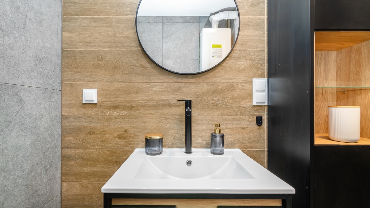 łazienka z pełnym wyposażeniem i zabudową,
