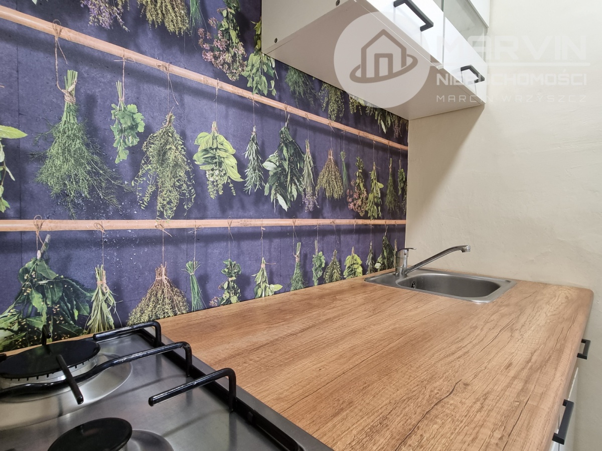 Na 27m2 składają się: pokój, mała kuchnia, łazienka, przedpokój