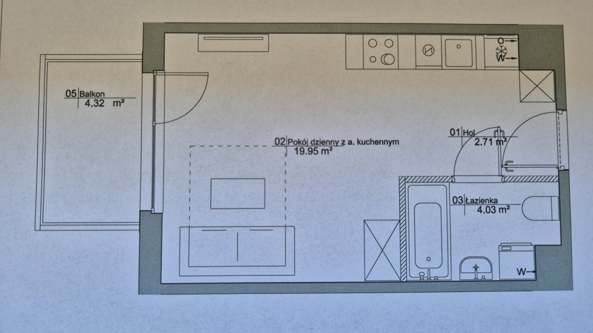 – Pokój z Aneksem Kuchennym 20 mkw.