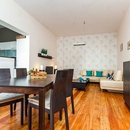 Mieszkanie utrzymane jest w wysokim standardzie a wszystkie materiały,urządzenia są wysokiej jakości wraz z unikatową sosnową podłogą ,także mieszkanie gotowe do wprowadzenia.