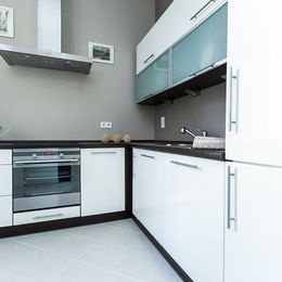 Komplet mebli w zabudowie,piekarnik,płyta indukcyjna,okap,czajnik,zmywarka,lodówko-zamrażarka,wyposażanie(sztućce,talerze,kubki)
