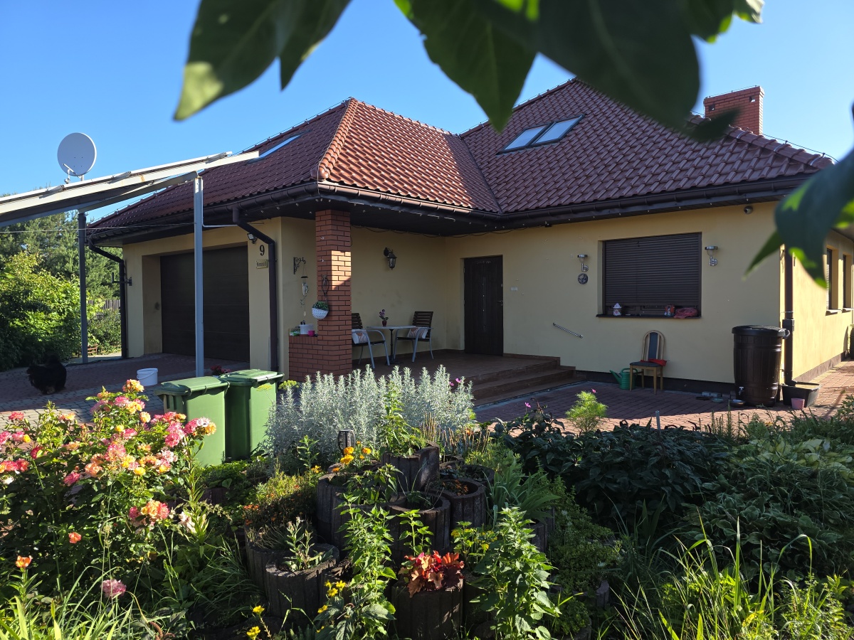 Budynek jest parterowy z użytkowym poddaszem. Przód i tył posesji zdobi starannie zaprojektowany ogród z licznymi nasadzeniami ozdobnymi. Do dyspozycji mieszkańców pozostają: