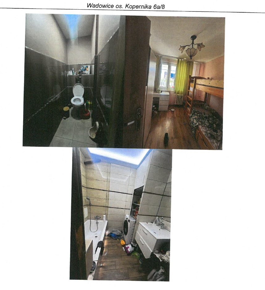 Przedmiotem sprzedaży jest udział 5/8 w nieruchomości lokalowej stanowiącej samodzielny lokal mieszkalny nr 8 położony na III piętrze budynku wielolokalowego nr 6a przy ulicy Kopernika w Wadowicach posiadający powierzchnie 59,86 m2 dla której Sąd Rejonowy w Wadowicach V Wydział Ksiąg Wieczystych prowadzi KW o numerze: KR1W/00086820/0.