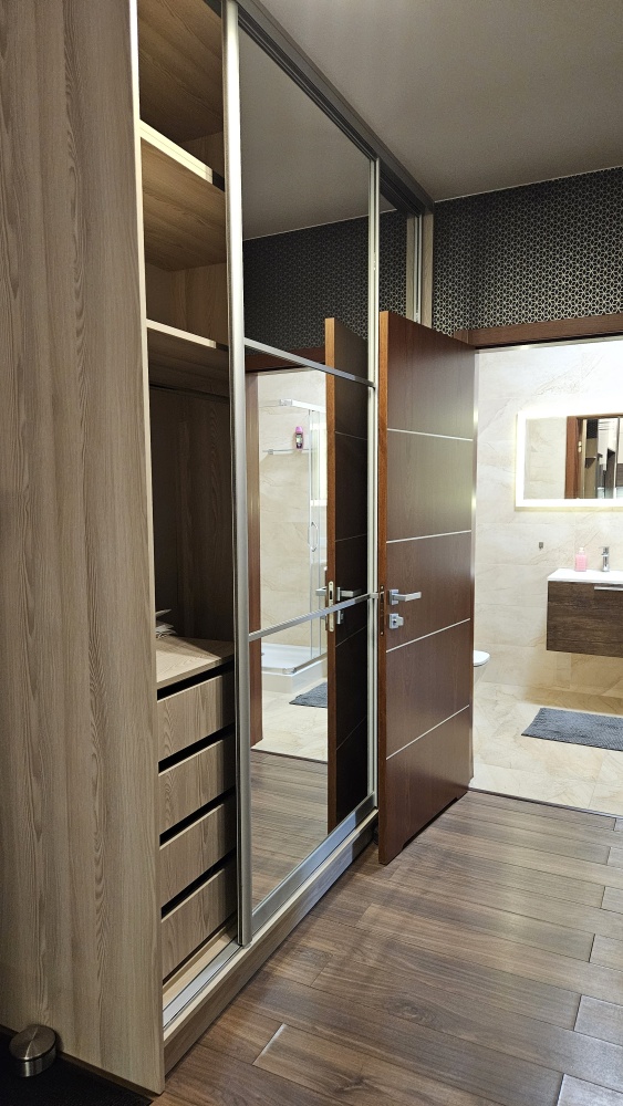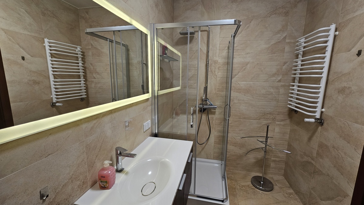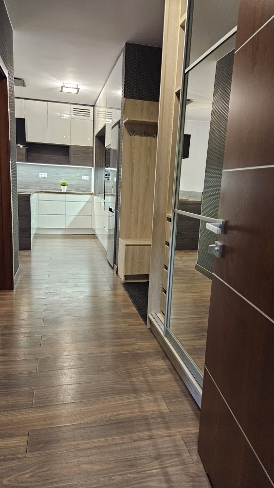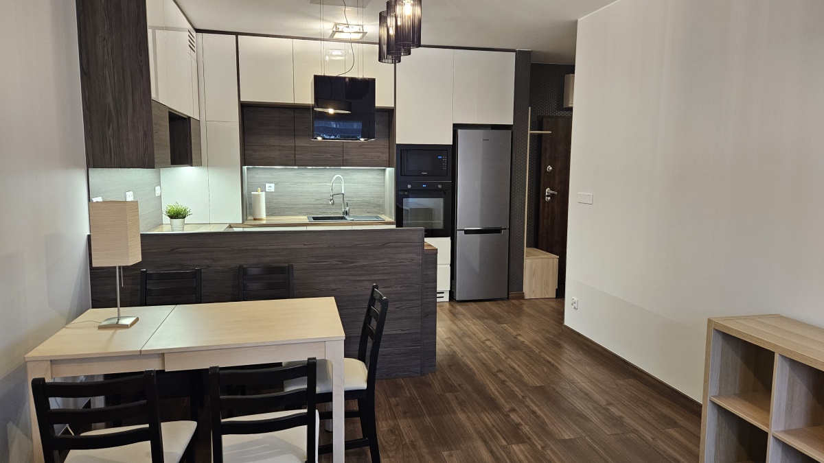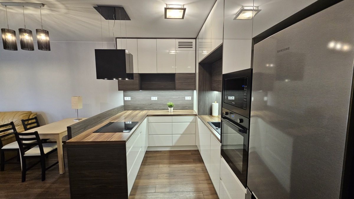 W mieszkaniu znajduje się kompletnie wyposażona kuchnia jest ona w aneksie do salonu, Zabudowa Kuchenna, Lodówka, Piekarnik, Płyta indukcyjna, Zamrażarka, Zlewozmywak, Zmywarka, Okap ), ładna nowoczesna duża łazienka i wygodne oddzielne 2 sypialnie. W przedpokoju i w sypialni znajdują się dwie pojemne szafy z drzwiami przesuwnymi. Wzornictwo i wykończenie było projektowane z przewagą ciepłych kolorów, dzięki czemu każdy powinien czuć się dobrze.