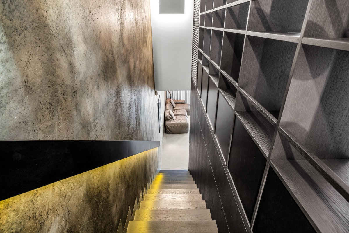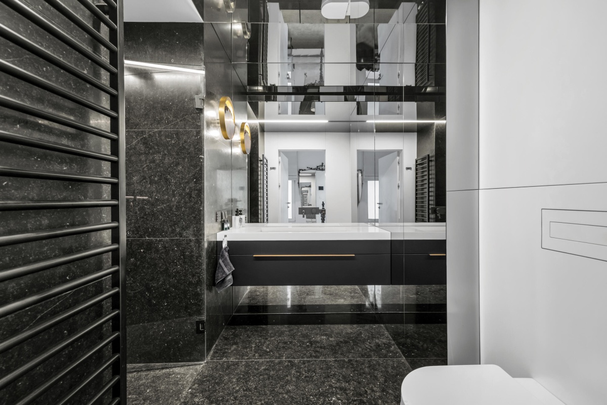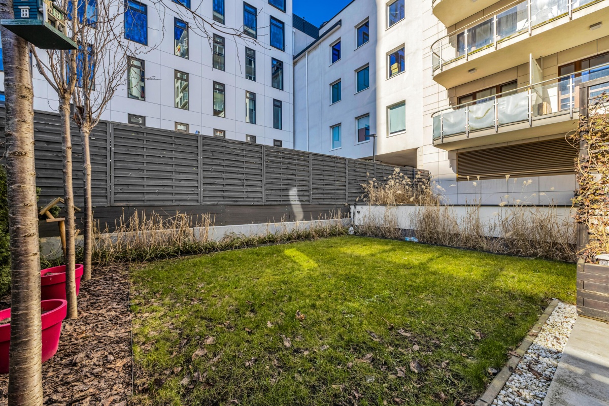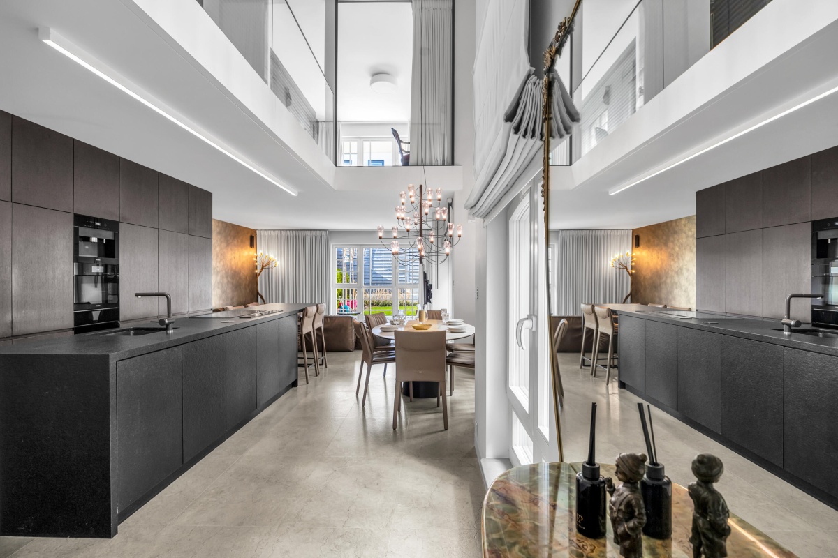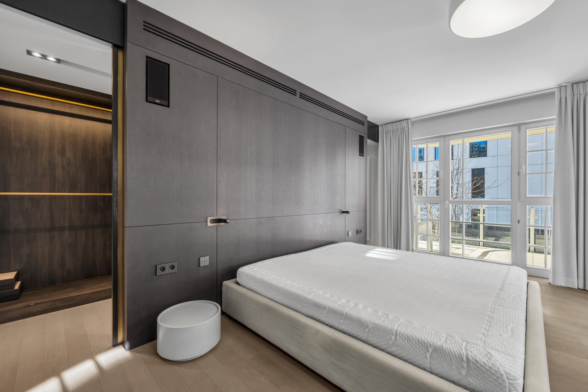 Apartament 134 m² w kameralnym, dwupoziomowym budynku z ogrodem 87 m² i antresolą o wysokości 5,5 m. Położony w cichej, drugiej linii zabudowy.