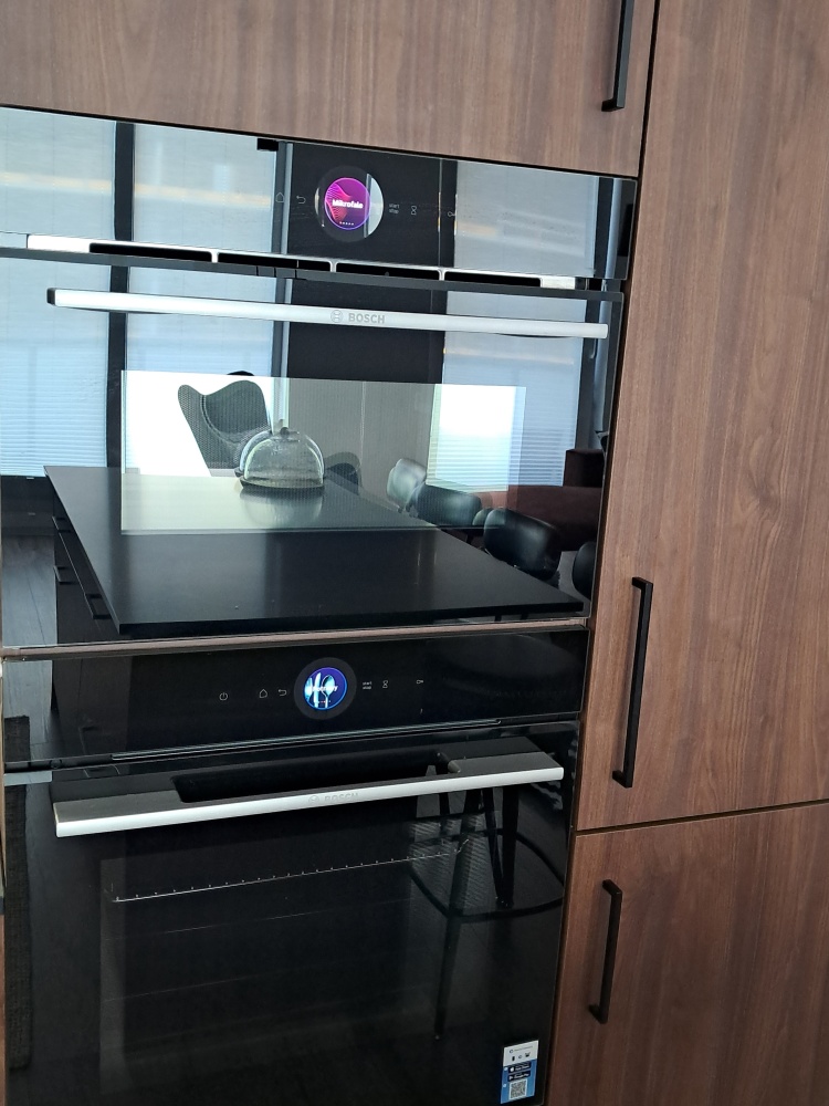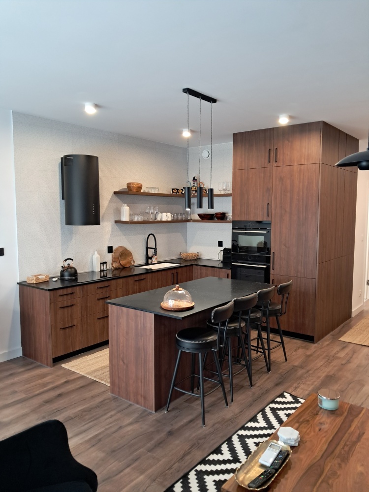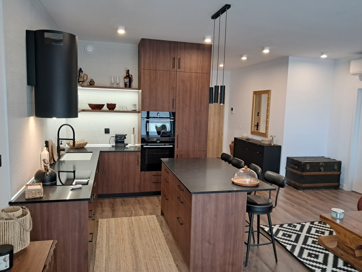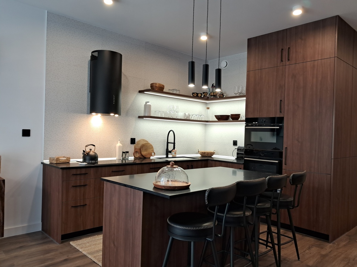 Kuchnia z jadalnią: Elegancka zabudowa na wymiar z kompletnym wyposażeniem AGD renomowanych marek.