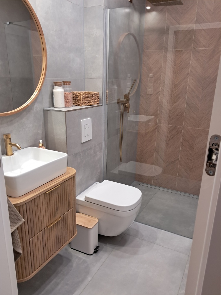 Łazienka: Nowoczesna, wyposażona w luksusowy prysznic.