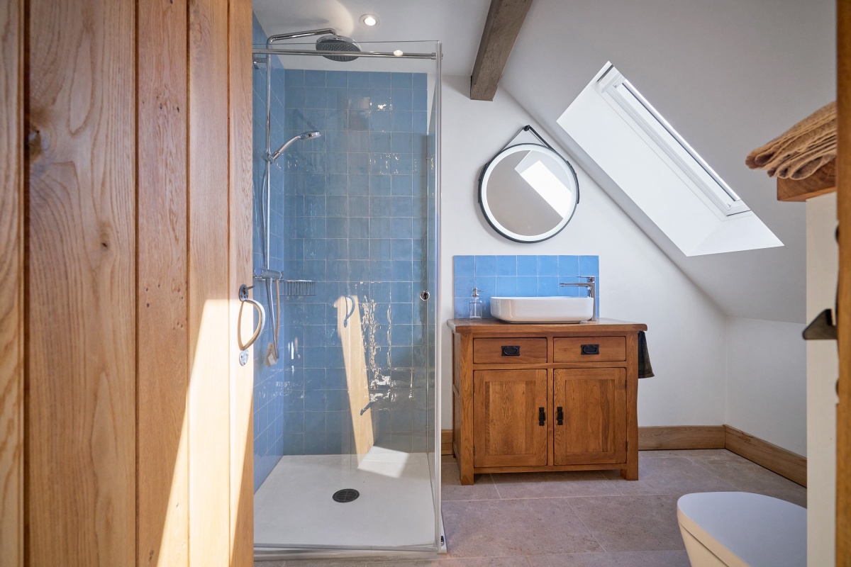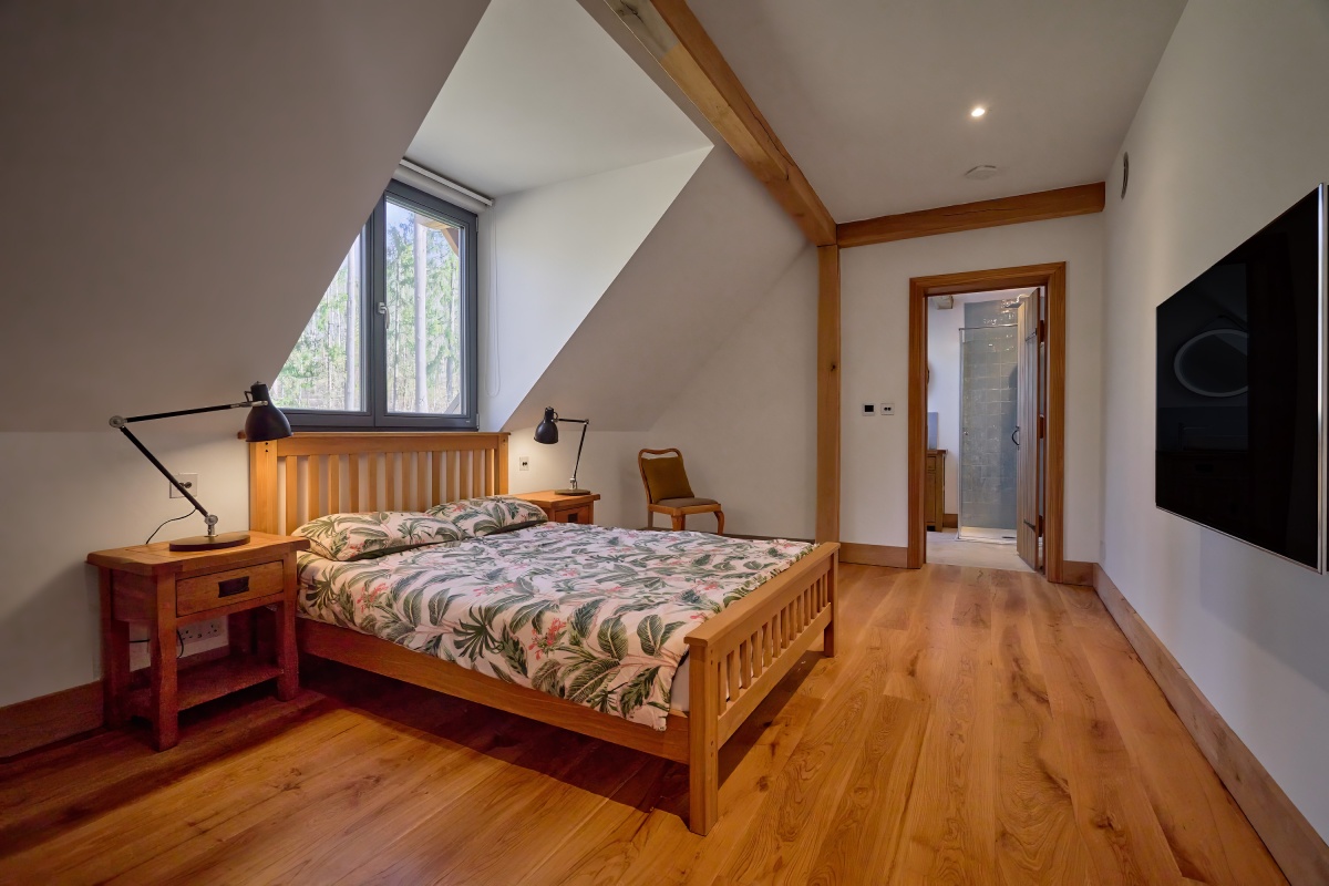 Na poddaszu znajdują się trzy sypialnie oraz dzienny salon. Każda z sypialni posiada własną łazienkę, co zapewnia pełną prywatność i wygodę użytkowania.