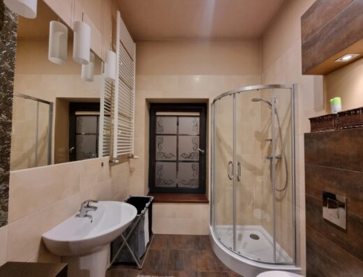 Pomieszczenie jest na pierwszym piętrze i dostęp jest szerokimi schodami.
