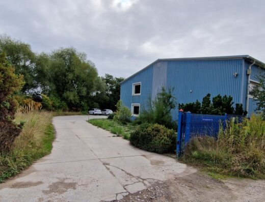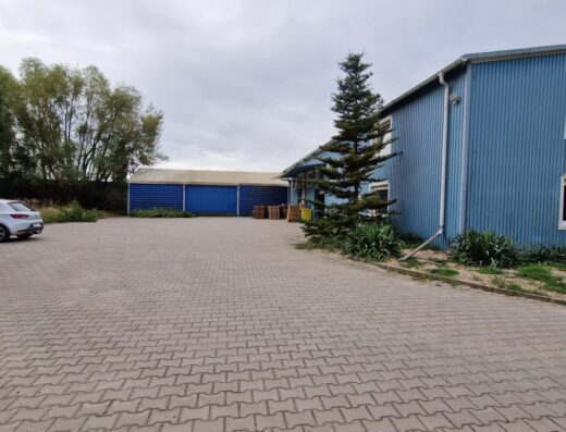 Magazyn posiada mocną posadzkę przemysłową. Można po nim jeździć wózkiem widłowym. Z przodu znajduje się dok rozładunkowy – do obsługi dostaw busami i TIR-ami