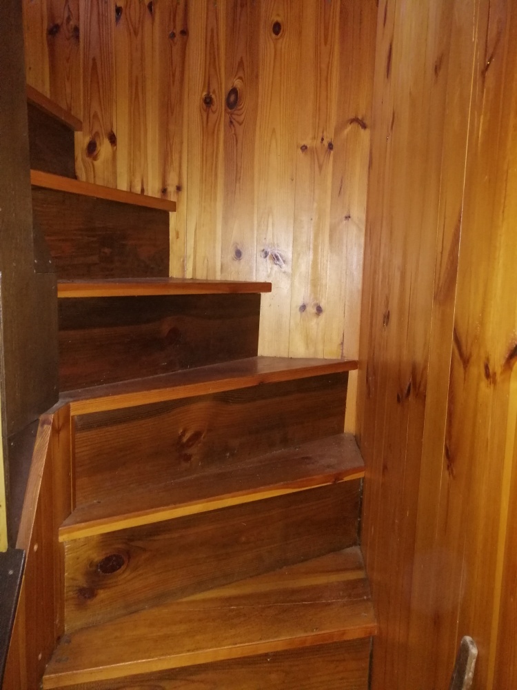 Piętro: 2 sypialnie po 2 tapczaniki i miejsce na stolik z widokiem na jezioro lub tapczanik.