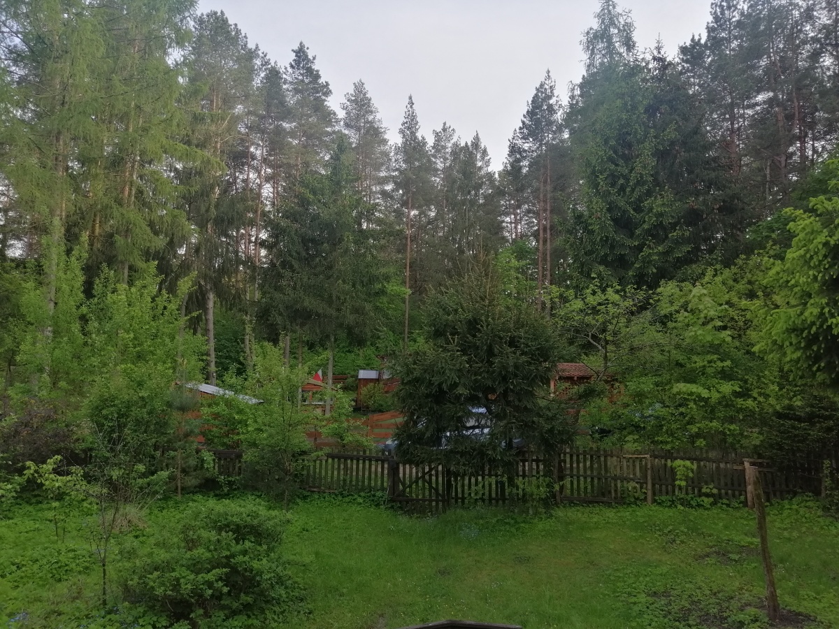 Działka 929m2 ok. 50m od jeziora, zagospodarowana, dużo roślin (jabłonie, winogrona itp.) wielki kasztan przy wjeździe.