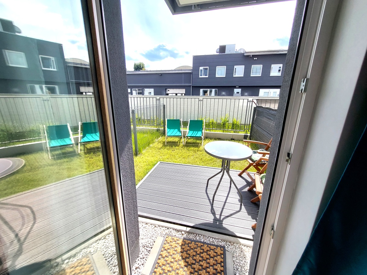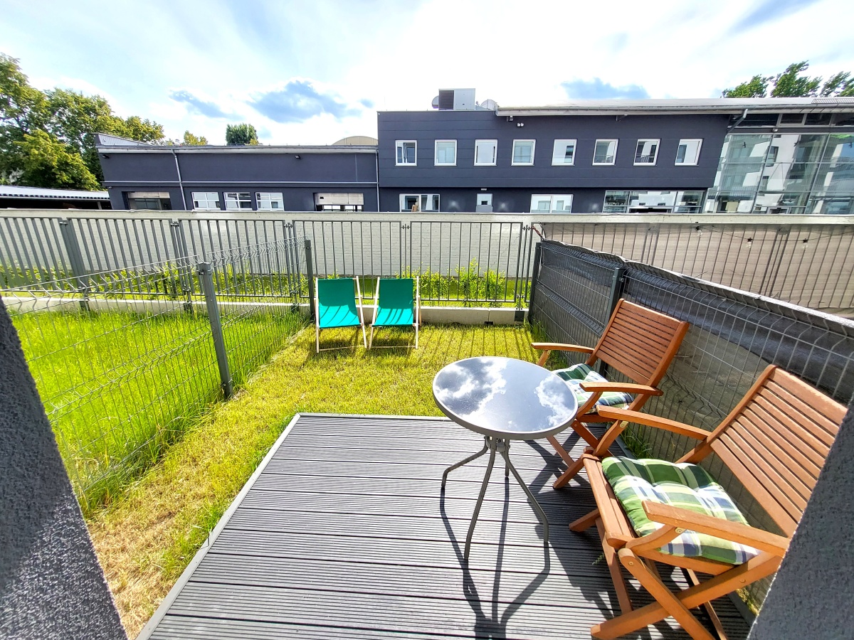 Zielony ogródek z tarasem 11m2 z meblami wypoczynkowymi