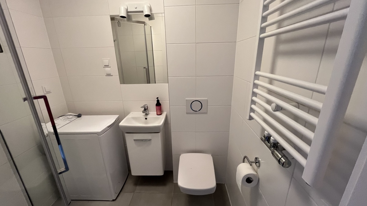 Dwa pokoje, kuchnia w pełni umeblowana i wyposażona w nowe sprzęty agd: zmywarka, lodówka, płyta, piekarnik, okap, pralka.
