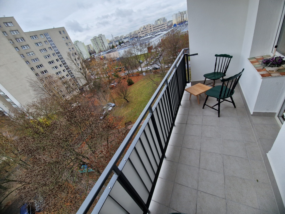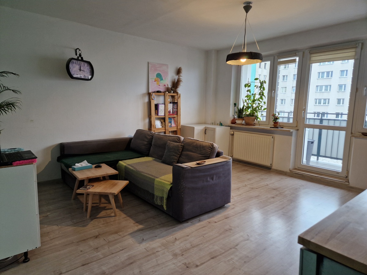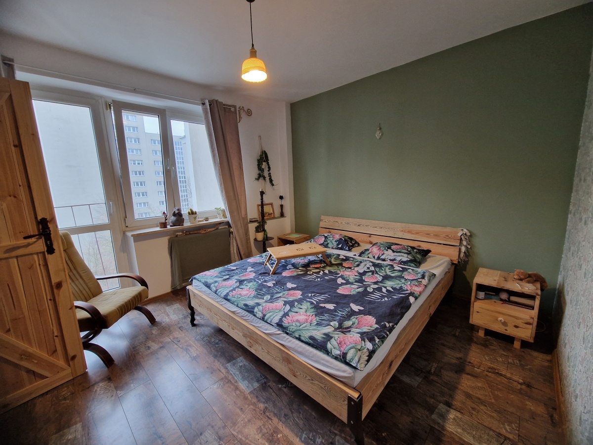 Jasne mieszkanie z dużym balkonem wychodzące na południowy zachód.