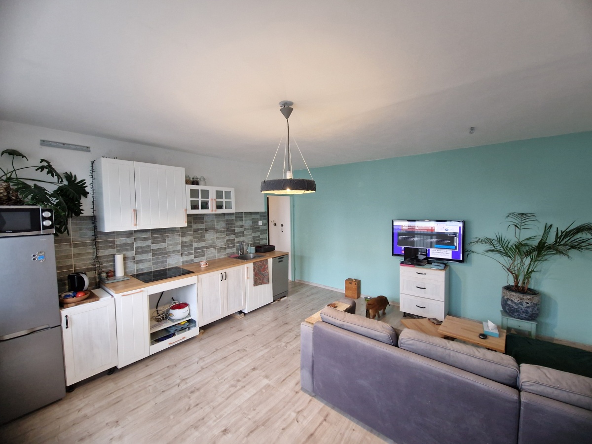 Przestronny salon z aneksem kuchennym, pokój, sypialnia.
