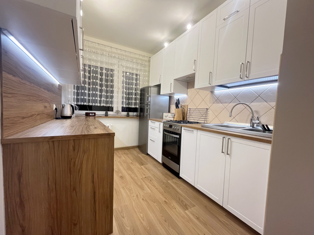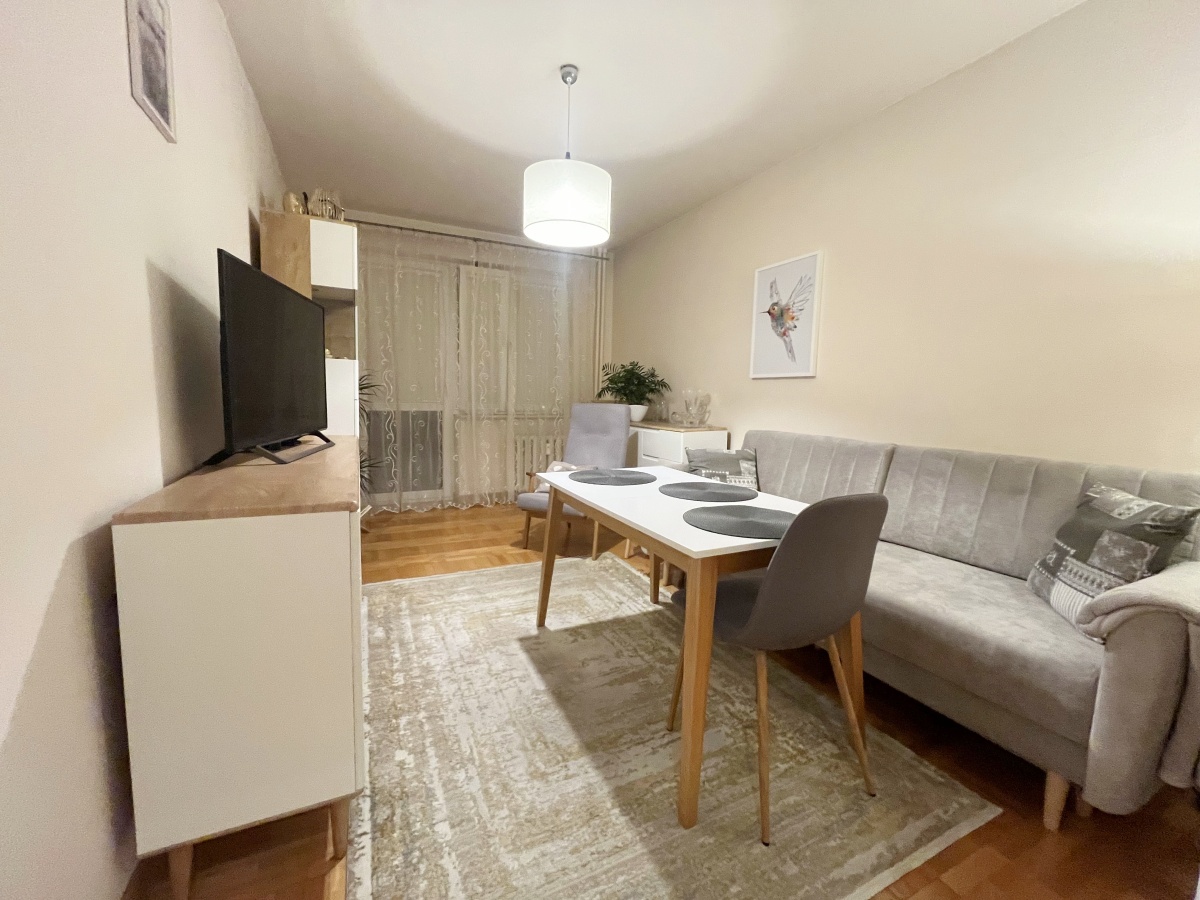 Gotowe do zamieszkania rozkładowe dwustronne mieszkanie. Ekspozycja wschód-zachód. Składa się z salonu, osobnego pokoju, oddzielnej kuchni, łazienki oraz hallu. Do mieszkania przynależy piwnica. Pod blokiem ogólnodostępny parking.