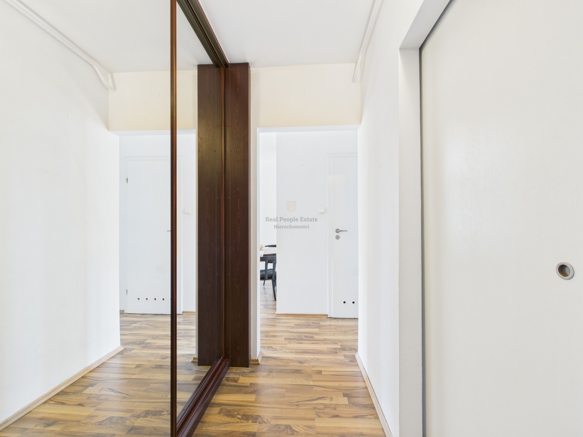 Mieszkanie znajduje się na 2. piętrze w zadbanym, 4-piętrowym budynku z lat 70. Klatka schodowa jest świeżo po remoncie. Do lokalu przynależy piwnica, a dodatkowym atutem są: balkon francuski, okna PCV oraz drzwi antywłamaniowe Gerda.