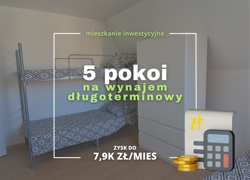 5 pokoi × 1200 zł = 6.000 zł/miesiąc
