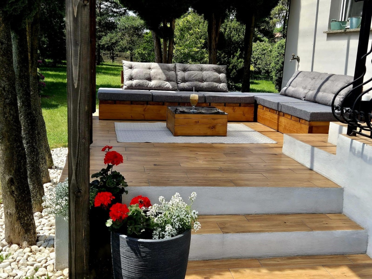 Taras i ogród wyłożone terakotą elegancko i praktycznie