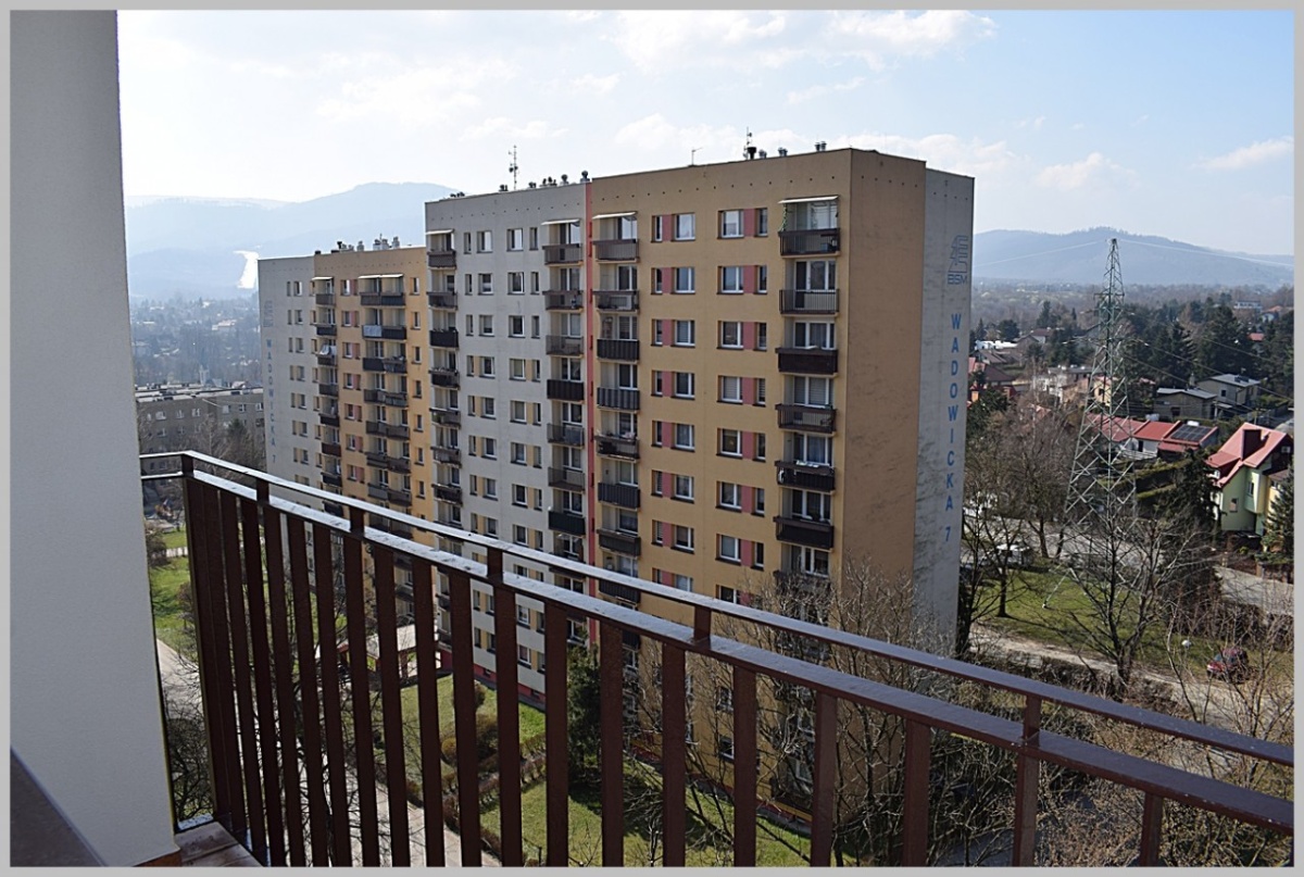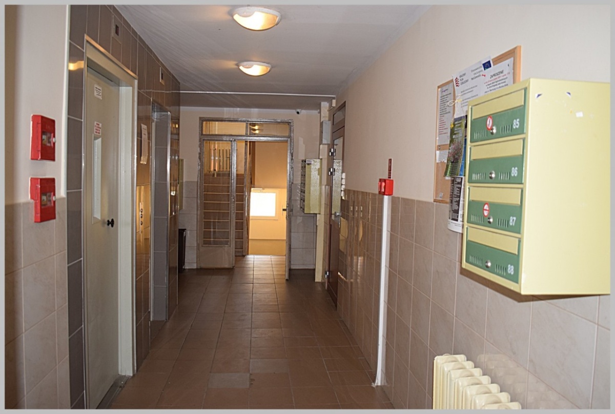 Mieszkanie ( lokal stanowiący odrębną nieruchomość z księgą wieczystą ) dwupokojowe o powierzchni 43,7 mkw położone na dziewiątym piętrze w bloku 10-piętrowym ( budynek po termomodernizacji ).