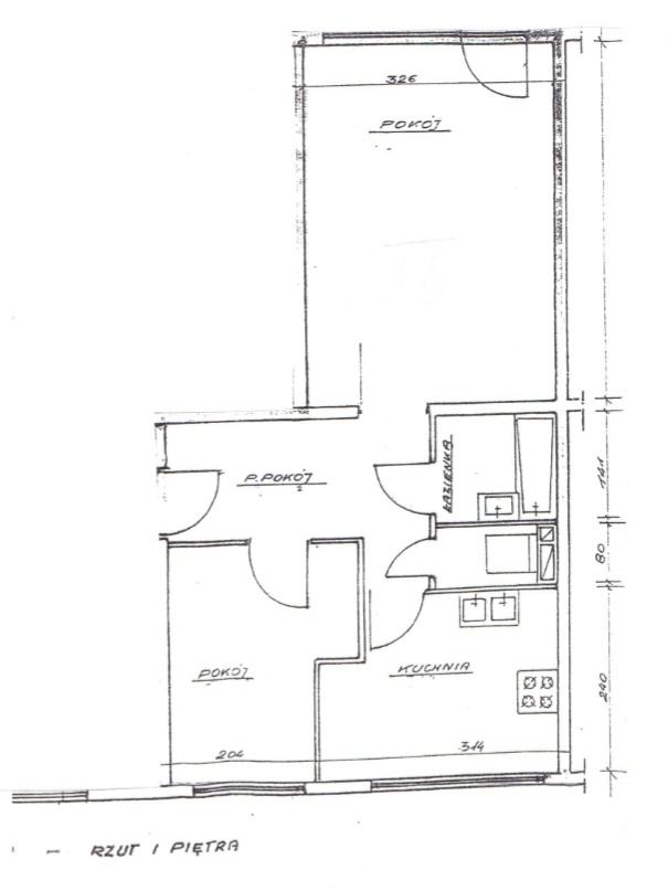 Mieszkanie o powierzchni 39 m2, usytuowane na pierwszym piętrze czteropiętrowego bloku .