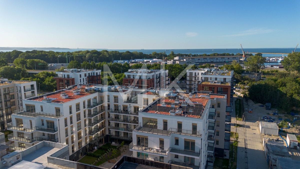 Osiedle wyróżnia się nowoczesną siłownią dostępną wyłącznie dla mieszkańców budynku, portiernią z całodobową obsługą i monitoringiem oraz wysokim standardem części wspólnych. Dodatkowym atutem jest prestiżowa lokalizacja w pobliżu morza i terenów spacerowych, a także ponadstandardowa wysokość sufitów – ok. 2,8 m, która daje poczucie większej przestrzeni.