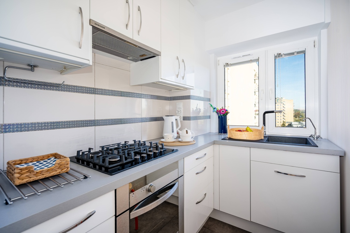 ✓ Kuchnia z oknem + miejsce do jedzenia: gotujesz i jesz poza pokojem, więc łatwiej utrzymać komfort i porządek w części prywatnej.