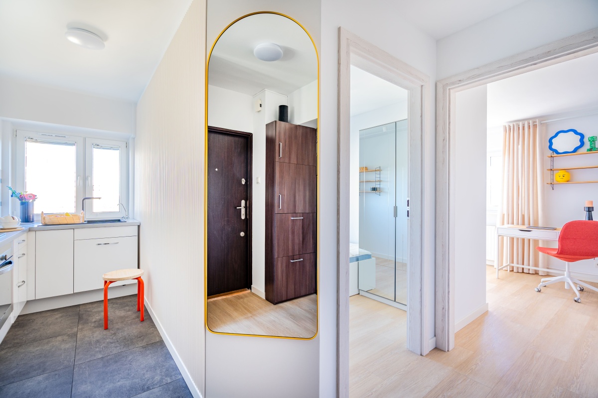 ✓ Porządek robi się sam: masz zamykany na klucz korytarz, gdzie zostawiasz buty i okrycia wierzchnie — w pokojach jest więcej miejsca i czysto.