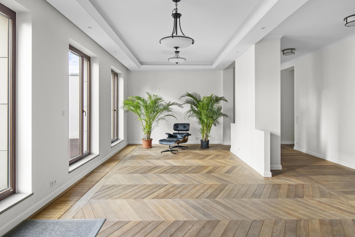 Wnętrza zostały starannie zaprojektowane, aby harmonijnie połączyć elegancję z wygodą. Oryginalne detale architektoniczne, takie jak przeszklone drzwi gabinetowe czy klasyczne parkiety, zostały pieczołowicie wkomponowane w tą fantastyczną nadbodówkę, nadając mieszkaniu wyjątkowy charakter.