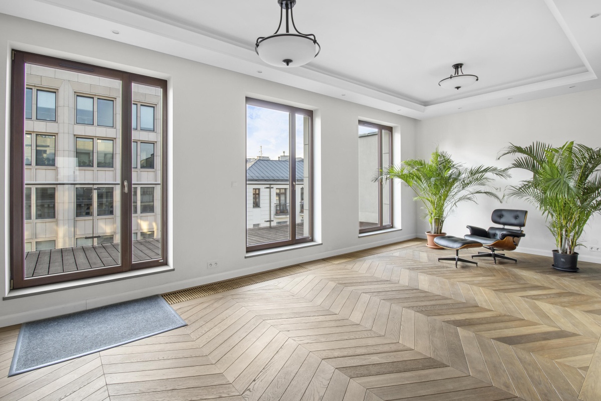 Nowoczesna nadbudowa dwóch pięter (cztery ekskluzywne mieszkania), umiejętnie wkomponowana w pięknie odrestaurowaną zabytkową kamienicę z 1895 roku | Wysublimowane wykończenia | Najmodniejsza lokalizacja na spokojnej i cichej Mokotowskiej | Przestronne wnętrza z wysokimi sufitami | Po generalnym wykończeniu | W pełni wykończone | Nowoczesna szklana winda. Taki apartament z tarasem pojawia się w sprzedaży raz na dekadę. Aktualnie jest to jedyny apartament z takim tarasem na sprzedaż na Mokotowskiej.