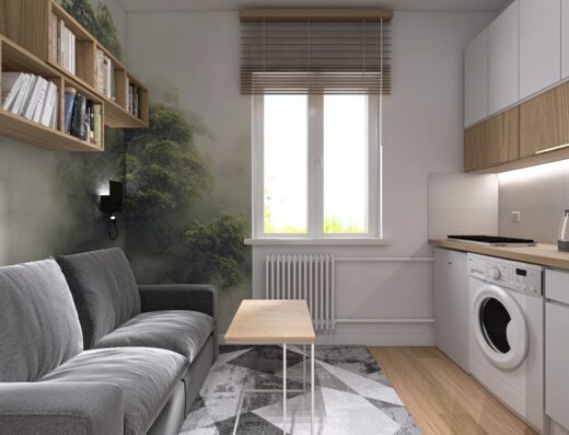 Mieszkanie o powierzchni ponad 46 m² z widokiem na malownicze patio znajduje się na pierwszym piętrze w doskonale utrzymanej kamienicy z windą. Wnętrze składa się z przestronnego salonu (ok. 25 m²) z aneksem kuchennym i wyjściem na balkon, komfortowej sypialni, eleganckiej łazienki z wanną, oddzielnej toalety oraz holu z miejscem na szafę garderobianą.