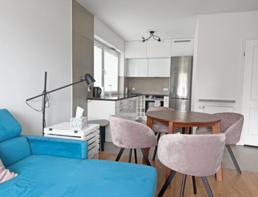 • Ponadprzeciętny standard wykończenia – naturalne materiały, fornirowane meble, armatura Hansgrohe, drewniane podłogi i kuchnia z granitowym blatem – tu każdy detal pracuje na Twój codzienny komfort