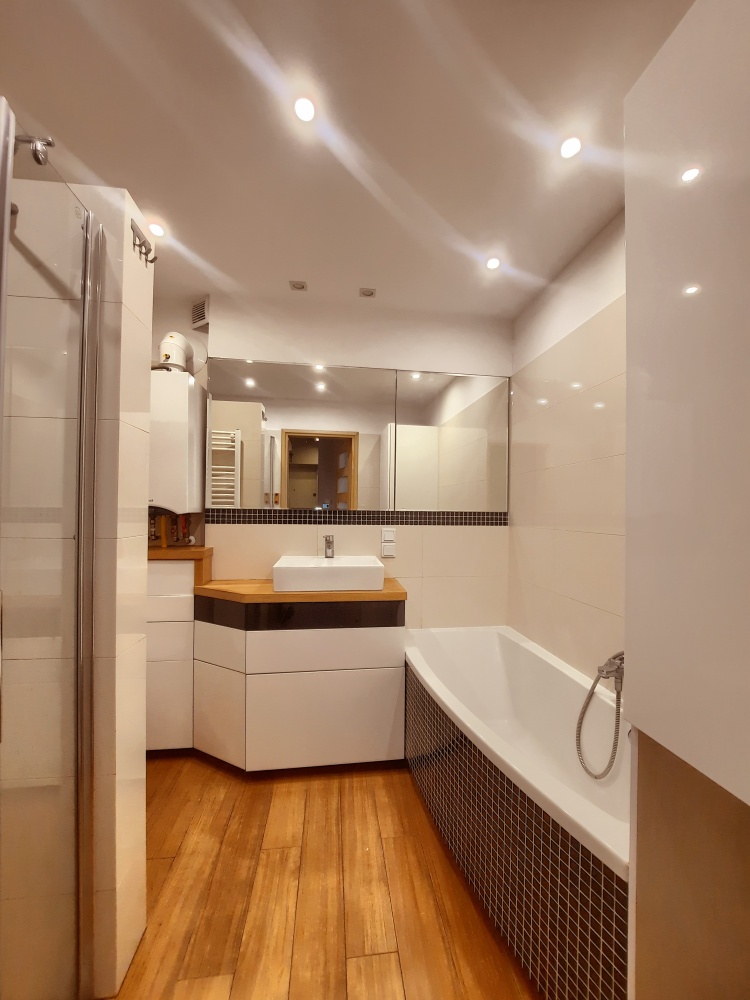 • powierzchnie pomieszczeń: dół: salon z aneksem: 21 m, pokoje: 9 m, 7,5 m; – łazienka 3,3 m – balkon 5,5 m, góra: pokoje: 11 m, 7,8 m, łazienka 5,76 m,