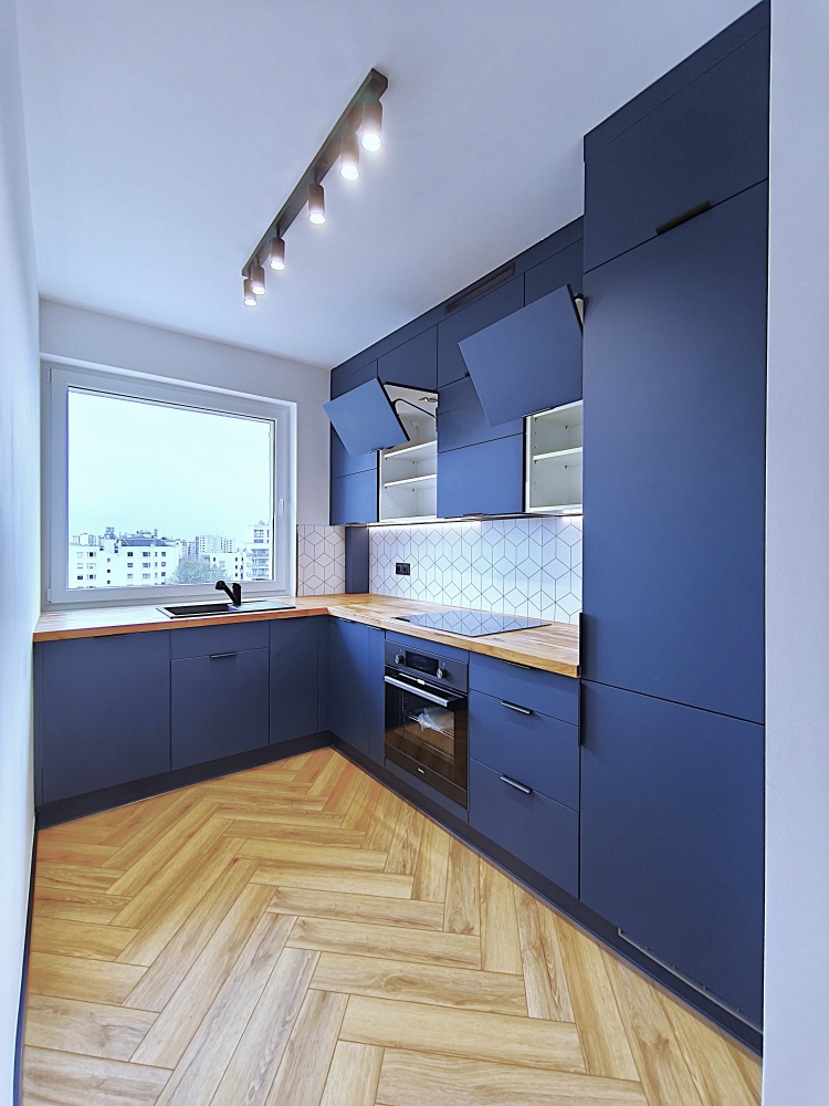 – nowa zabudowa meblowa w kuchni wykonana przez stolarza na wymiar