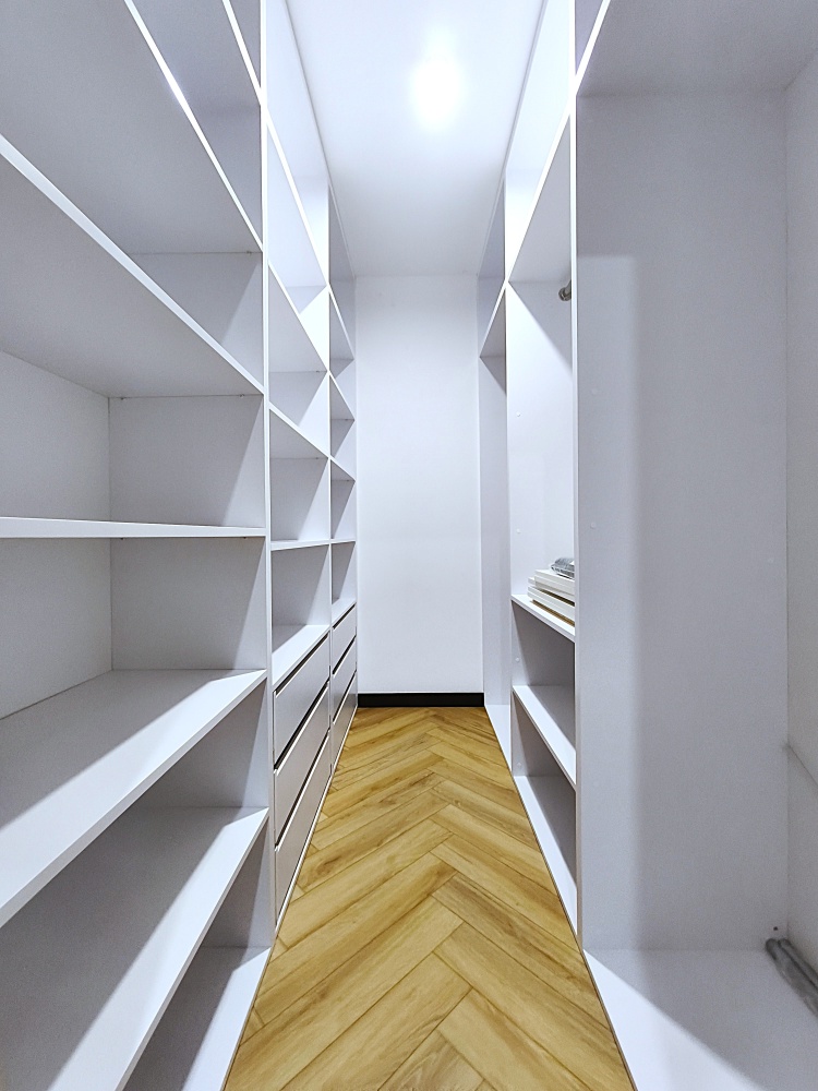 – nowa zabudowa w garderobie wykonana przez stolarza na wymiar