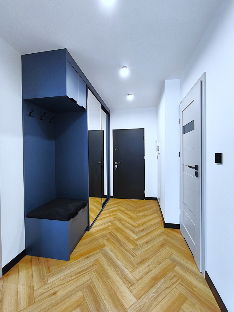 – nowa zabudowa meblowa w przedpokoju wykonana przez stolarza na wymiar