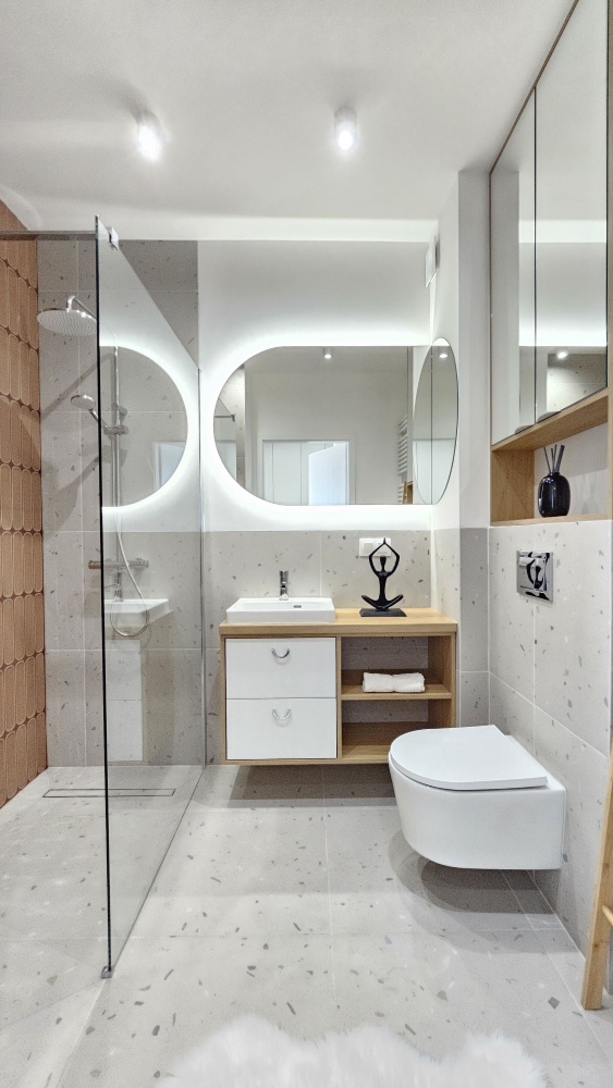 Mieszkanie jest nowo wykończone na wysoki standard, przy współpracy z projektantem, z dbałością o każdy detal. Pierwotny układ został zmieniony, aby zapewnić maksymalną funkcjonalność i wygodę. Gotowe do zamieszkania – meble na wymiar (w łazience, przedpokoju i kuchni) wykonane przez doświadczonego stolarza, kuchnia wyposażona w nowy sprzęt AGD.