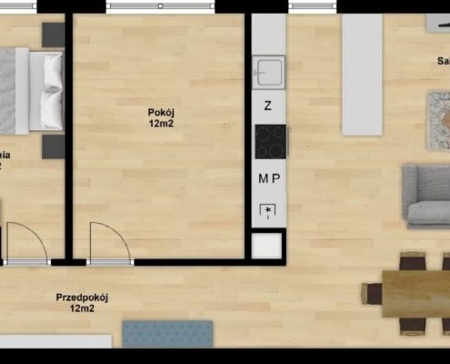 Druga sypialnia (11 m²) – idealna jako gabinet lub pokój dziecka.