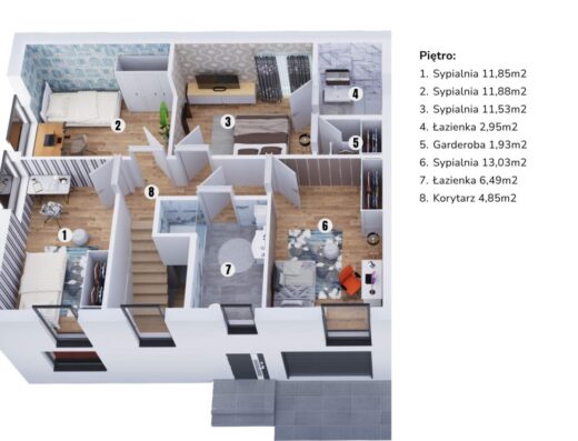 Rozkład pomieszczeń w każdym mieszkaniu: