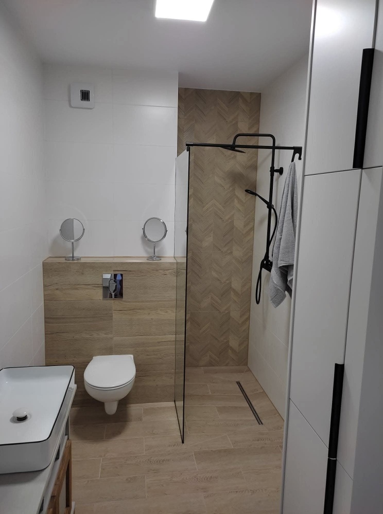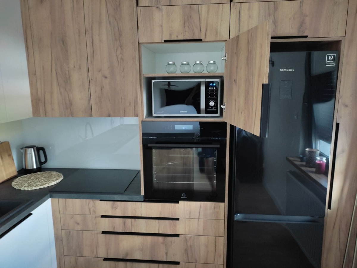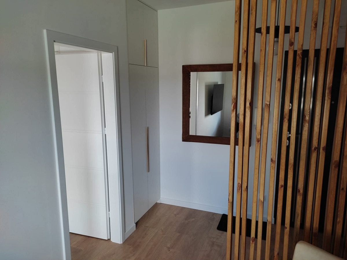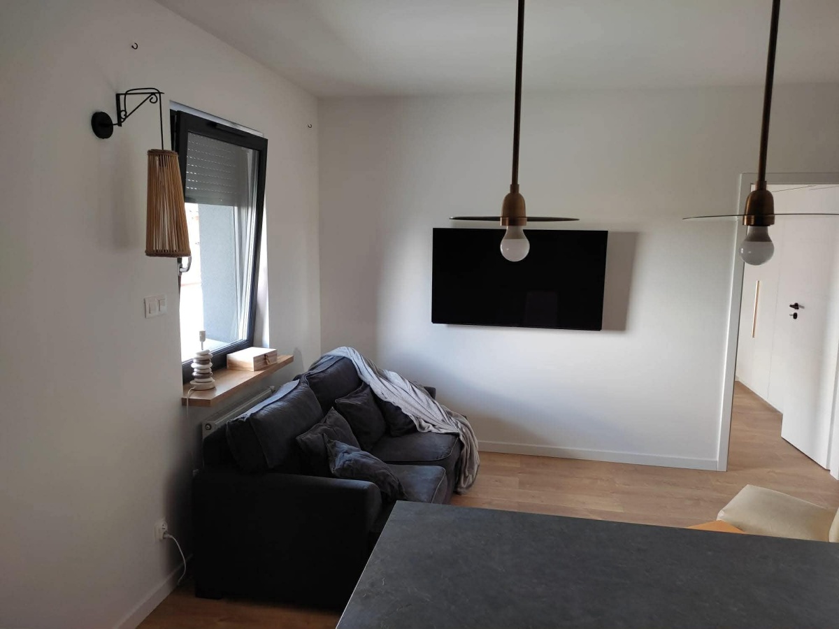 Wnętrze jest urządzone w nowoczesnym stylu -gotowe do wprowadzenia bez dodatkowych nakładów, w pełni umeblowane (w każdym z pokoi znajduję się rozkładana dwuosobowa sofa) i wyposażone we wszystkie sprzęty (pralka, zmywarka, lodówka, piekarnik, kuchenka, telewizor) oraz podstawowe artykuły codziennego użytku.