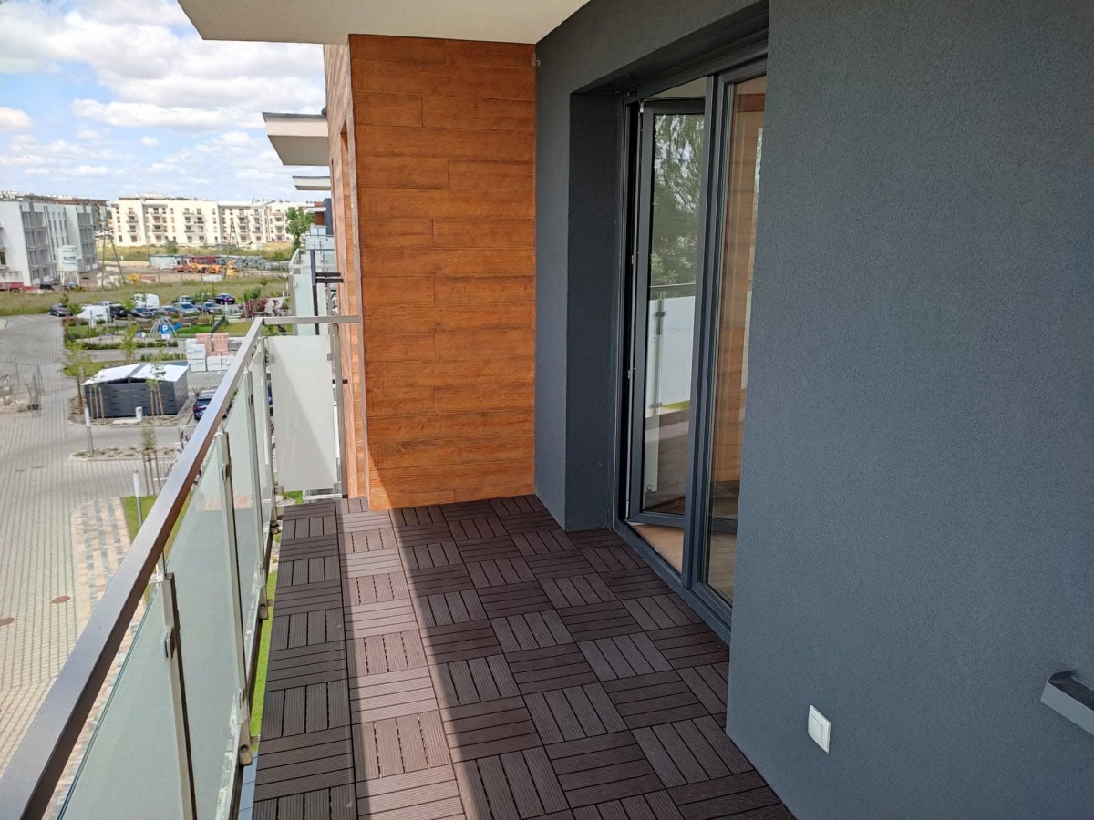 Dodatkowo w mieszkaniu znajduję się nowa klimatyzacja oraz rolety zewnętrzne, co zapewnia komfort użytkowania o każdej porze roku. Kolejnym atutem jest duży przeszklony balkon z bezpośrednim wejściem z sypialni.