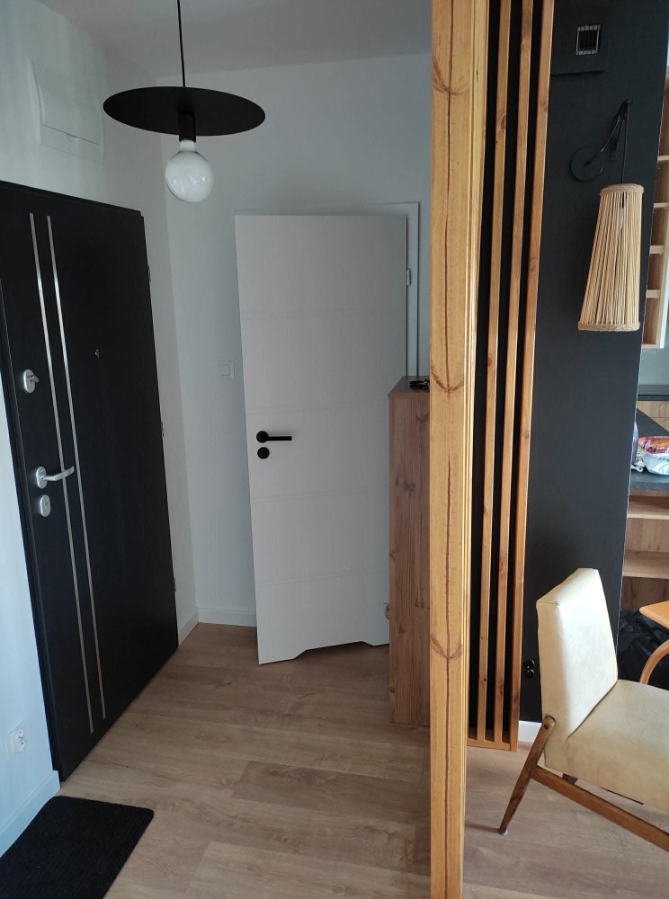 Na powierzchni ok. 41m2 znajduje się przestronny salon z aneksem kuchennym, sypialnia, łazienka z wc oraz przedpokój.