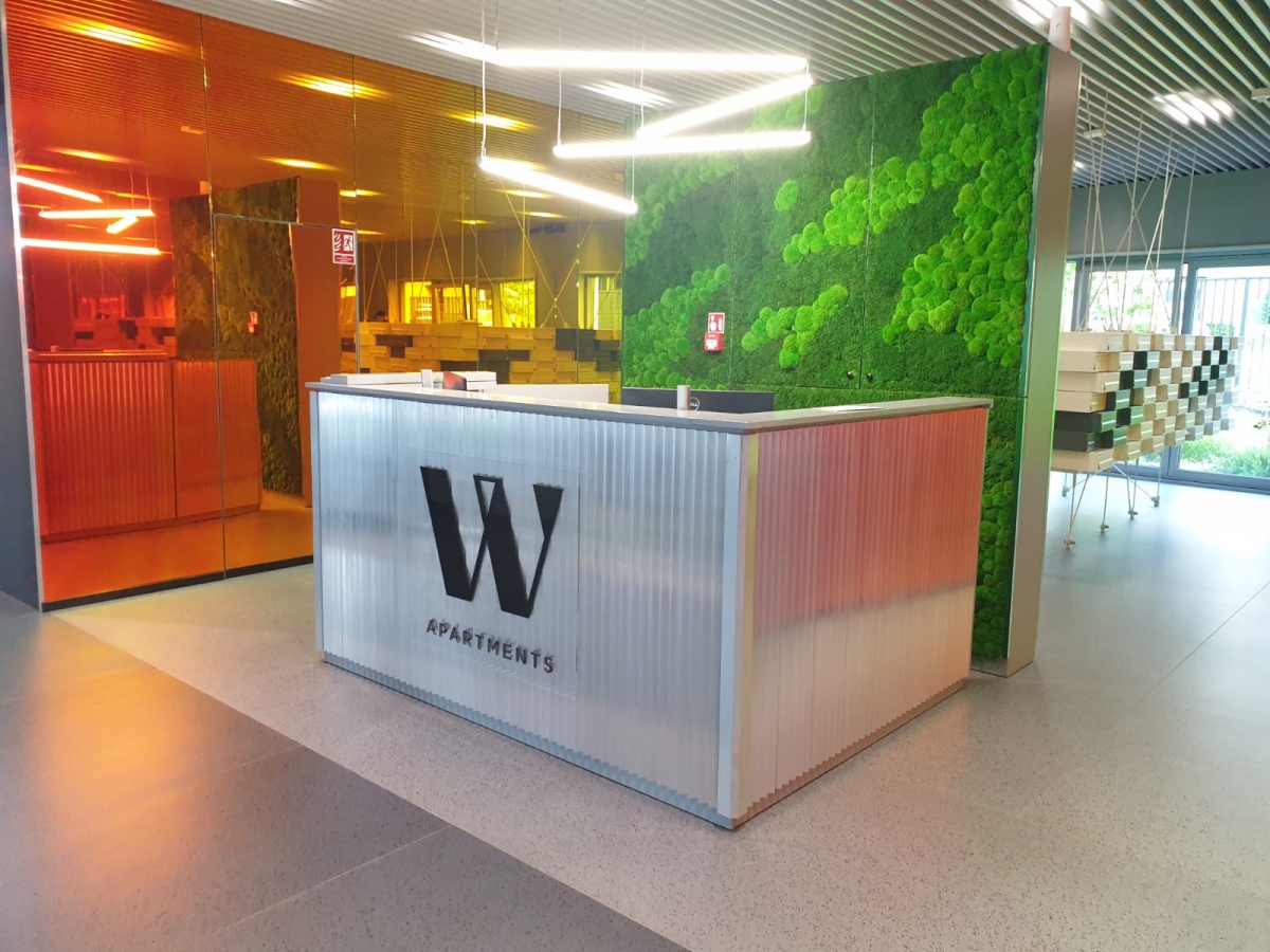 Apartamentowiec oddany do użytku w 2021 roku posiada elegancką, reprezentacyjną recepcję oraz całodobową ochronę .