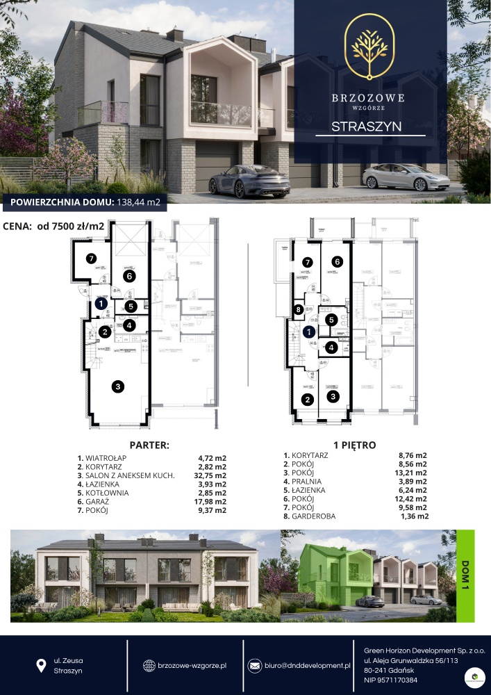 Dom 1A (narożny) – 138,44 m² – 1 149 000 PLN