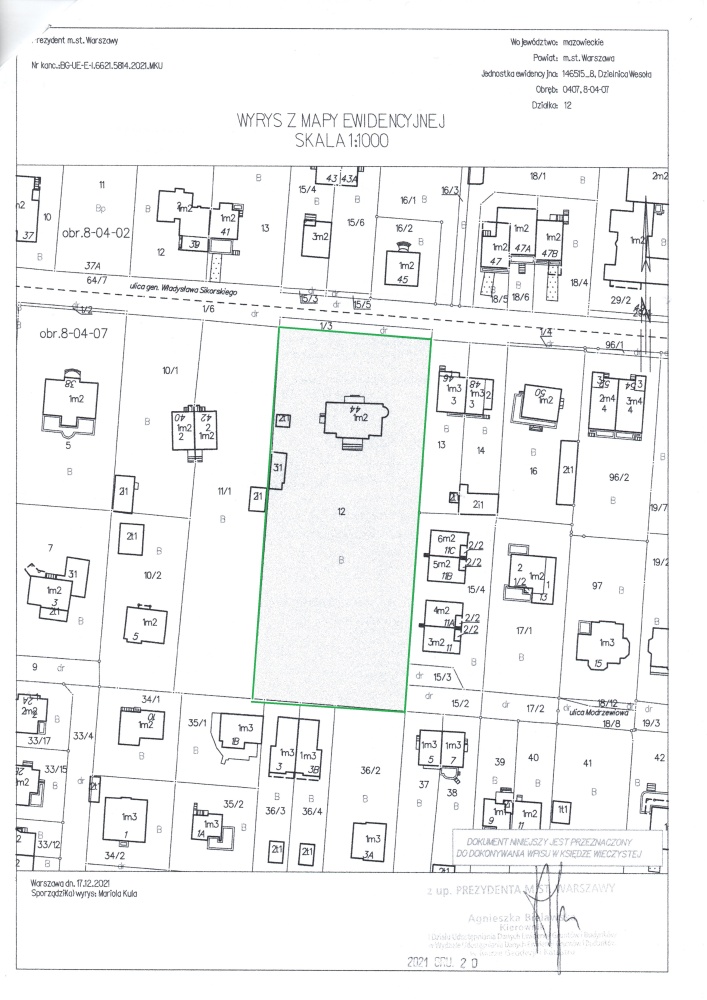 Działka o numerze ewidencyjnym 12 obręb 8-04-07, nie jest położona w obszarze rewitalizacji ani w Specjalnej Strefie Rewitalizacji. Rada m. st. Warszawy nie podjęła uchwały, o której mowa w art. 8 ustawy z dnia 9 października 2015 roku o rewitalizacji (t,j, Dz.U. dnia 2021 r., poz 485)
