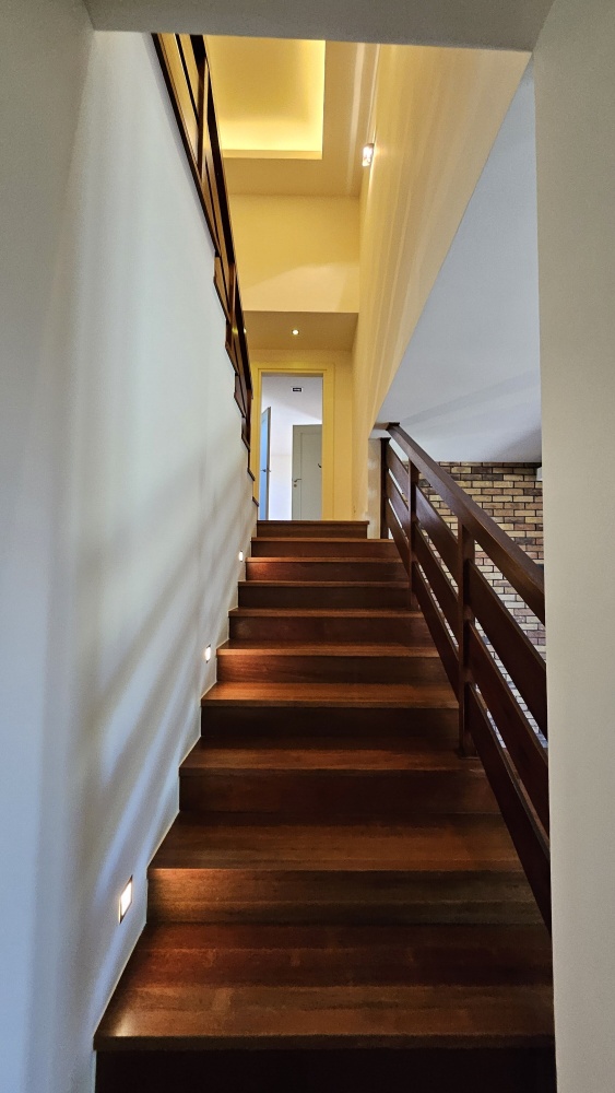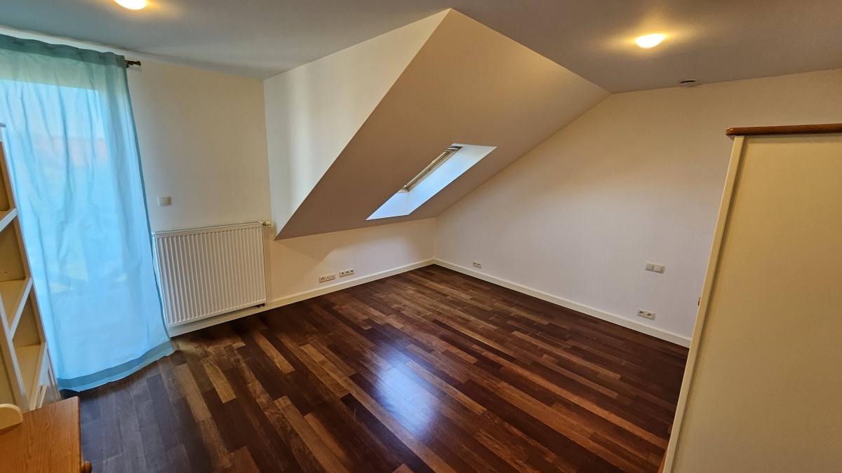 Parter: powierzchnia około 125 m²: przedsionek z ładną i funkcjonalną szafą i przejściem do garażu, toaleta gościnna, gabinet/sypialnia, nowy aneks kuchenny (w pełni wyposażony) z wykuszem i spiżarnią, jadalnia, salon z kominkiem z płaszczem wodnym (dodatkowe źródło ogrzewania c.o. i c.w.u.).